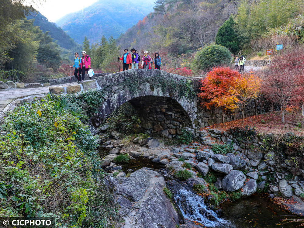 ↑2023年12月2日,人们在浙江省宁波市奉化区溪口镇栖霞坑村的古道上徒步。CICPHOTO/姚峰 摄
