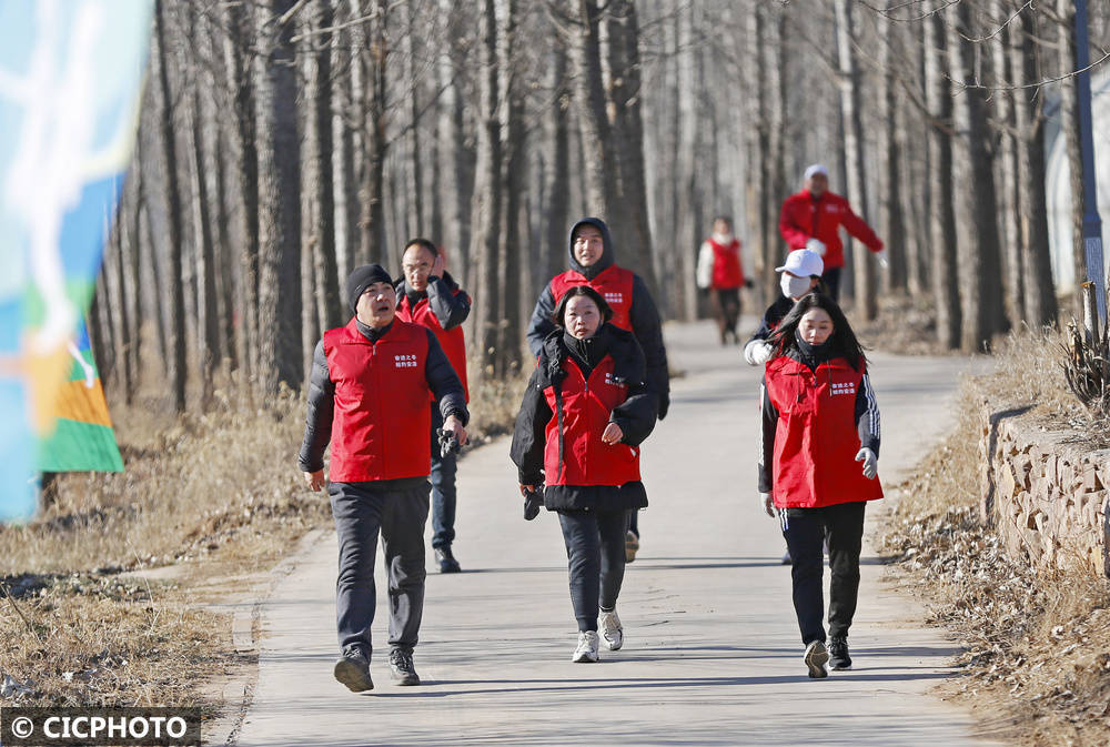 ↑2024年12月22日,人们在山西省临汾市安泽县府城镇飞岭村参加健步走活动。CICPHOTO/李现俊 摄